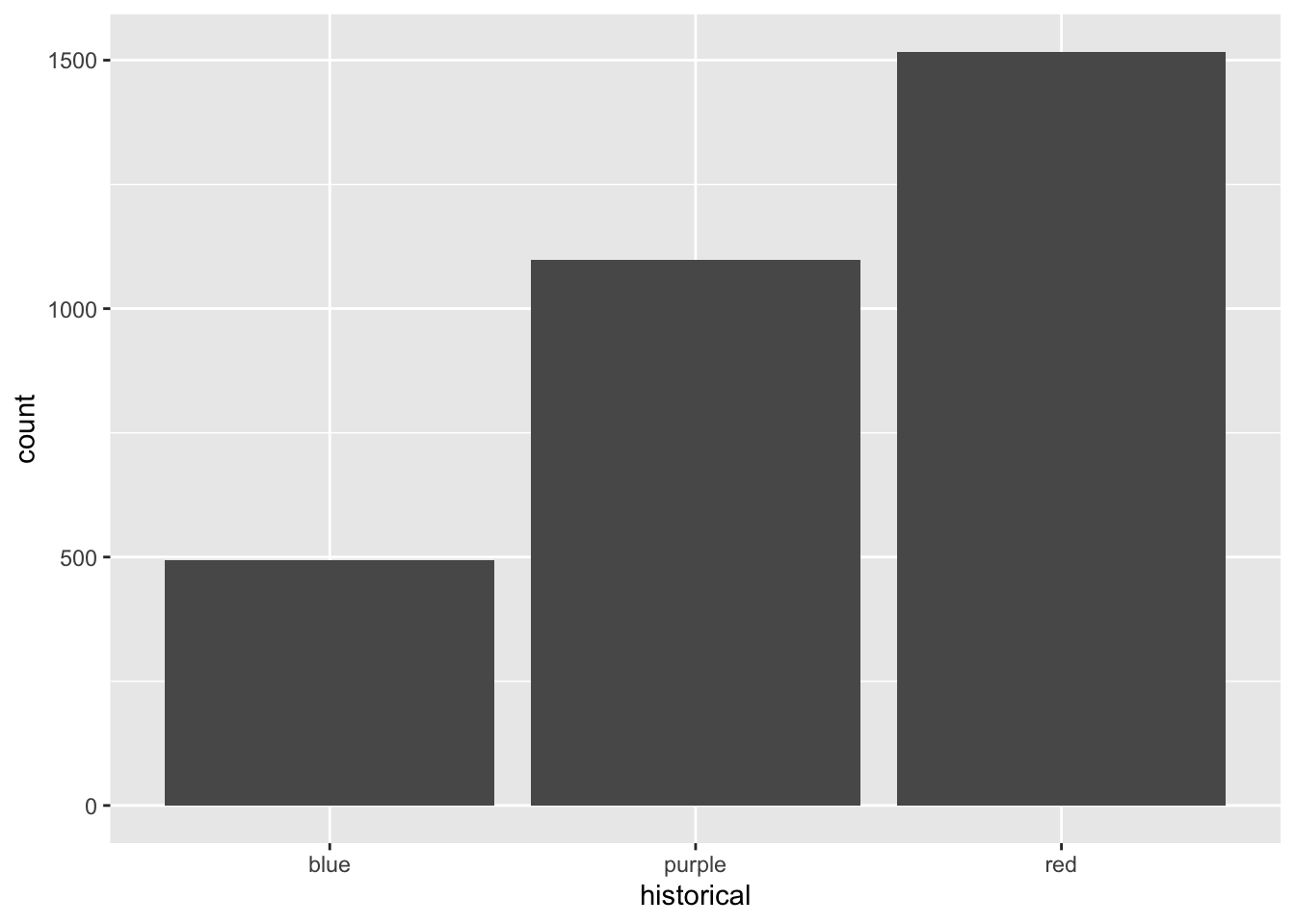 scale_fill_manual(values = c("blue", "purple", "red"))`stat_bin()` using `bins = 30`. Pick better value with `binwidth`.