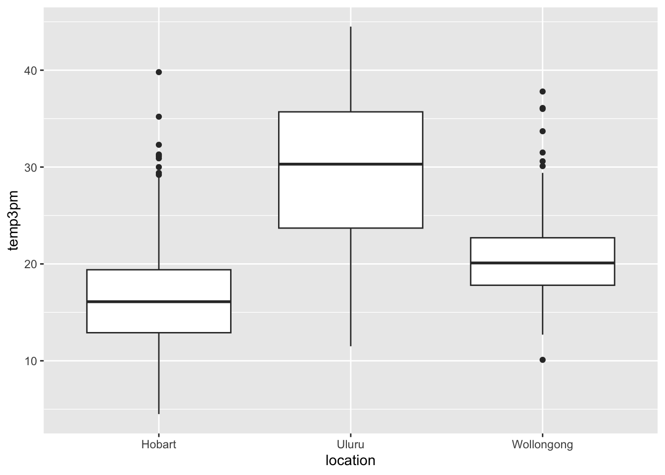 ggplot(weather, aes(y = temp3pm, x = location)) +