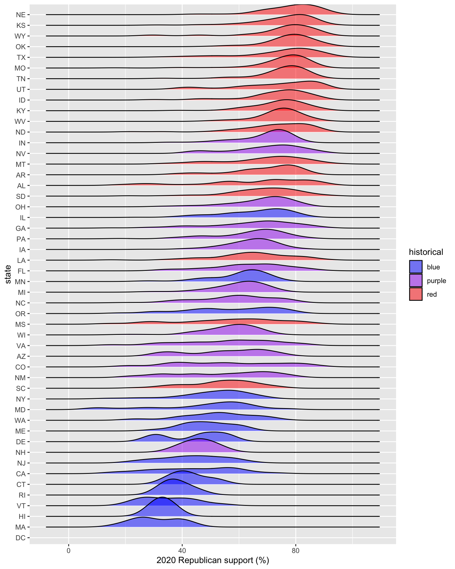 # YOUR TURN: color/fill the ridges according to a state's historical voting patterns