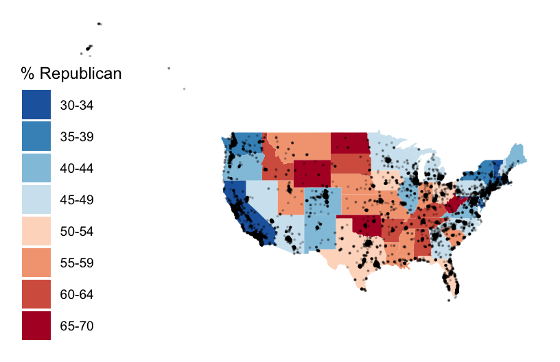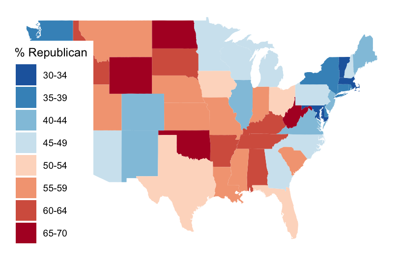 scale_fill_manual(values = rev(brewer.pal(10, "RdBu")), name = "% Republican") +