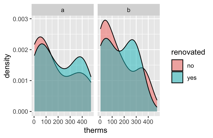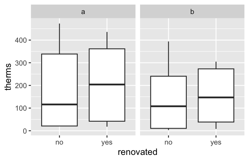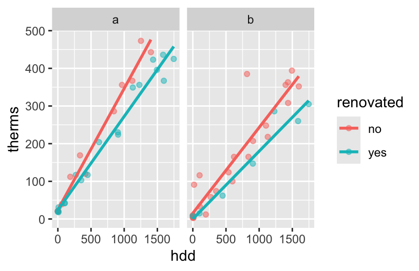 Thus, when controlling for ???, renovations led to decreased energy use.