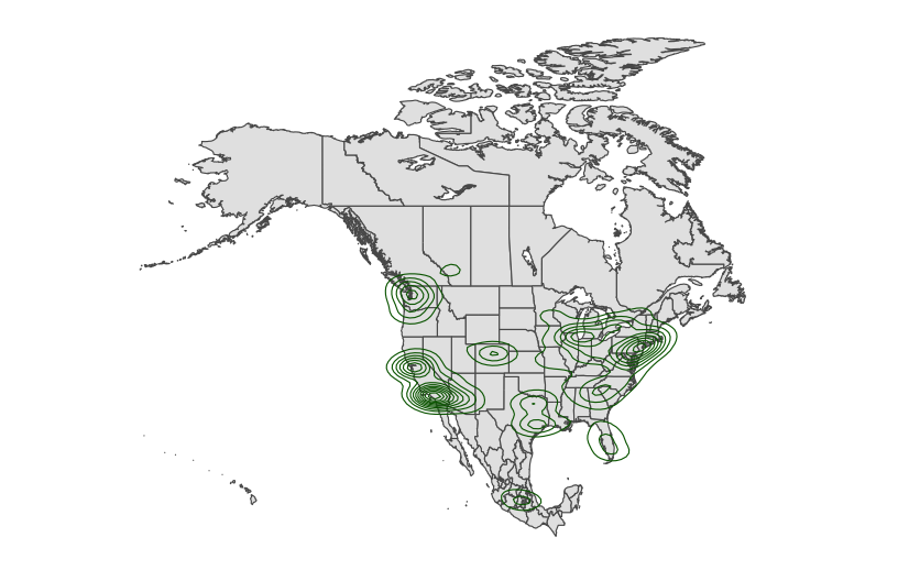 example: bigfoot sightingscontour maps: plotting the density or distribution of observations (not the individual observations themselves)