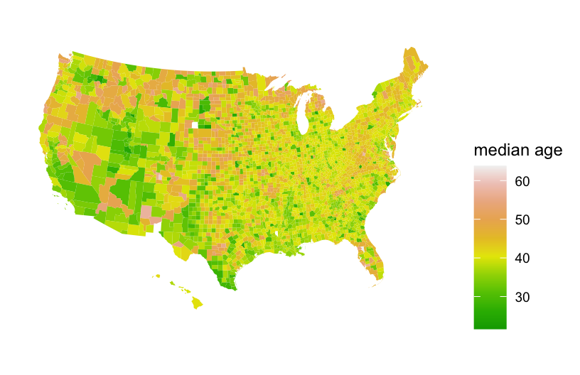 scale_fill_gradientn(name = "median age", colors = terrain.colors(10))