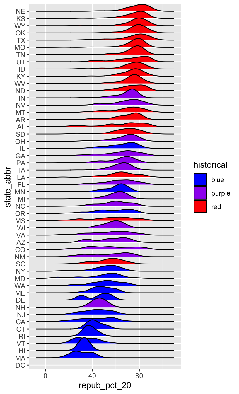 OK, but this is alphabetical. Suppose we want to reorder the states according to their typical Republican support. Recall that we did something similar in Example 2, using fct_relevel() to specify a meaningful order for the dem_support_20 categories: