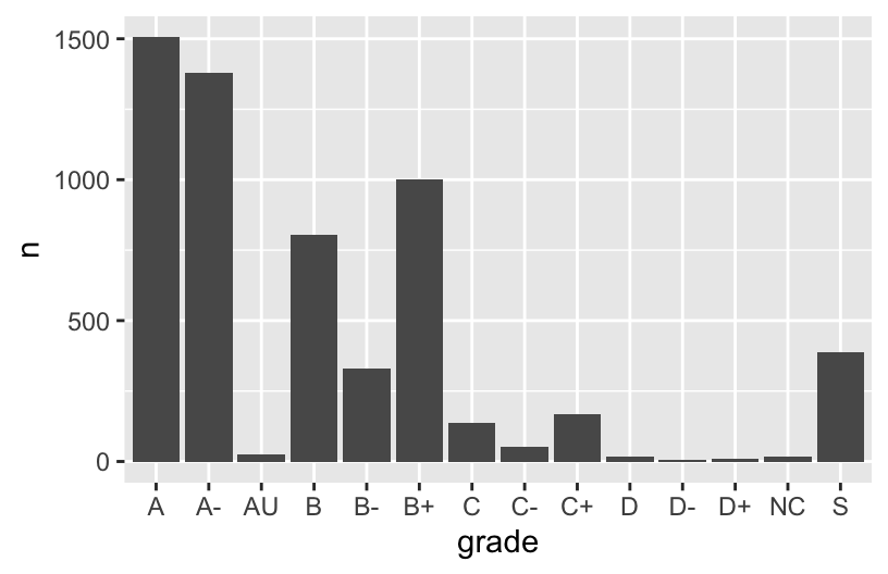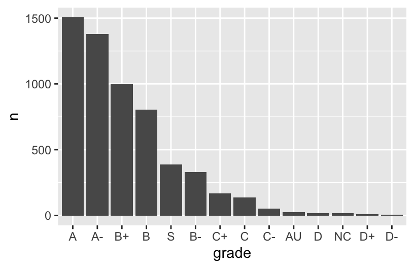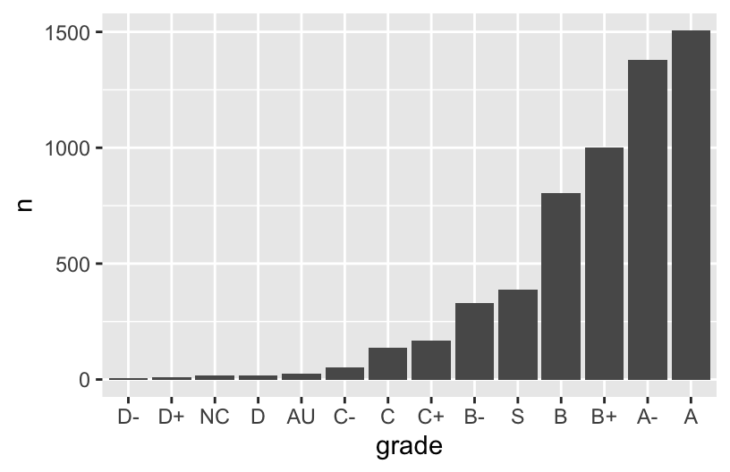 mutate(grade = fct_relevel(grade, c("A", "A-", "B+", "B", "B-", "C+", "C", "C-", "D+", "D", "D-", "NC", "S", "AU"))) %>%
