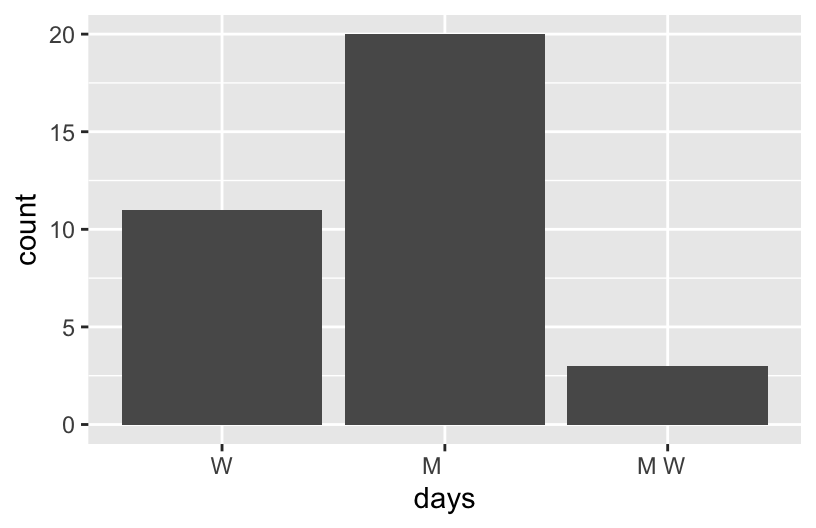 When categorical information is stored as a character variable, the categories of interest might not be labeled or ordered in a meaningful way. We can fix that!Strings (today!)