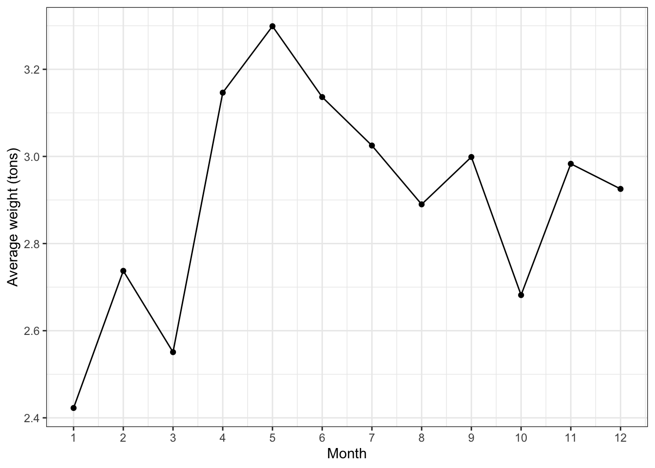 average monthly trash collection ranges from 2.4 to 3.3 tons