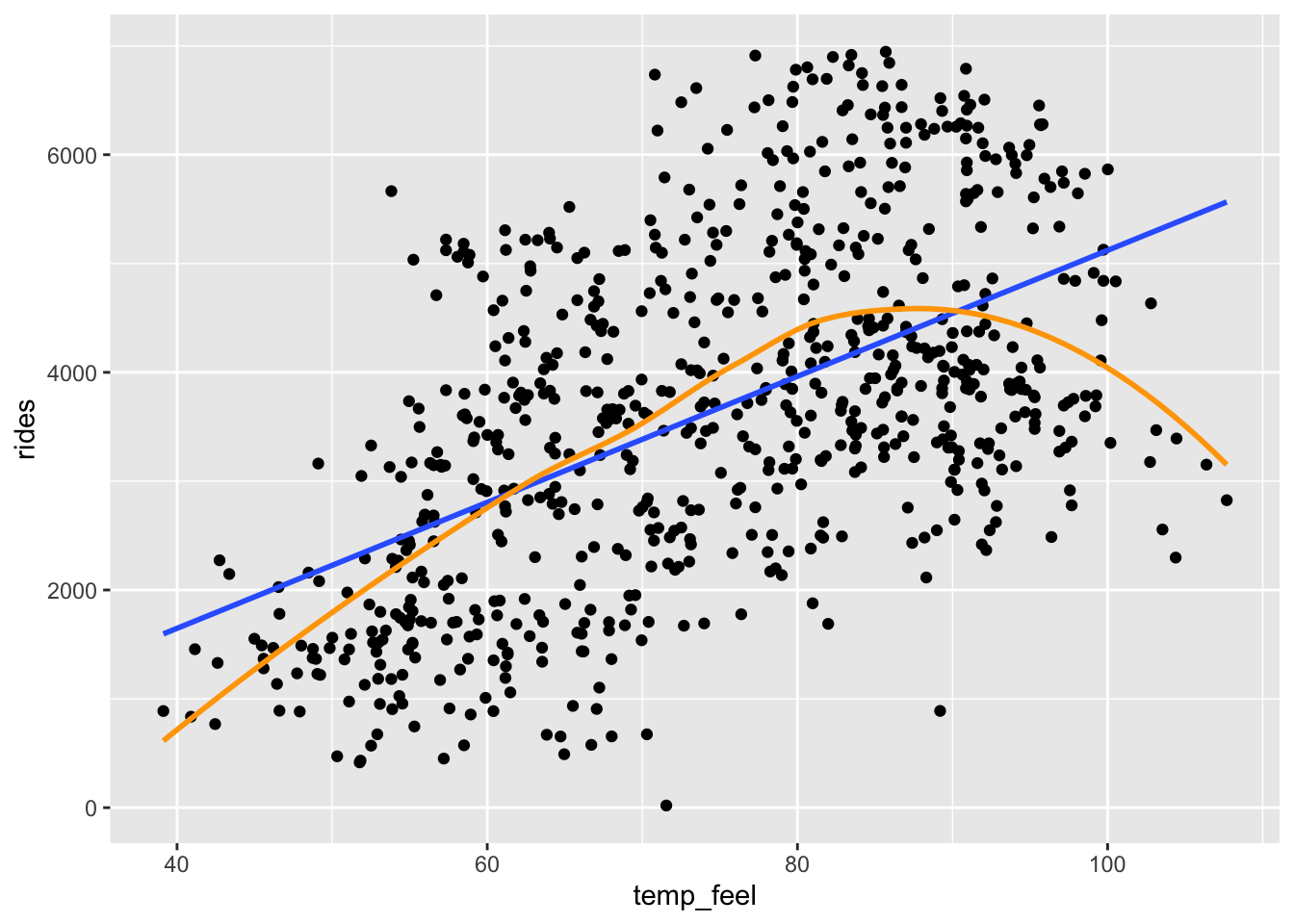 ## lm(formula = rides ~ temp_feel, data = bikes_sub)