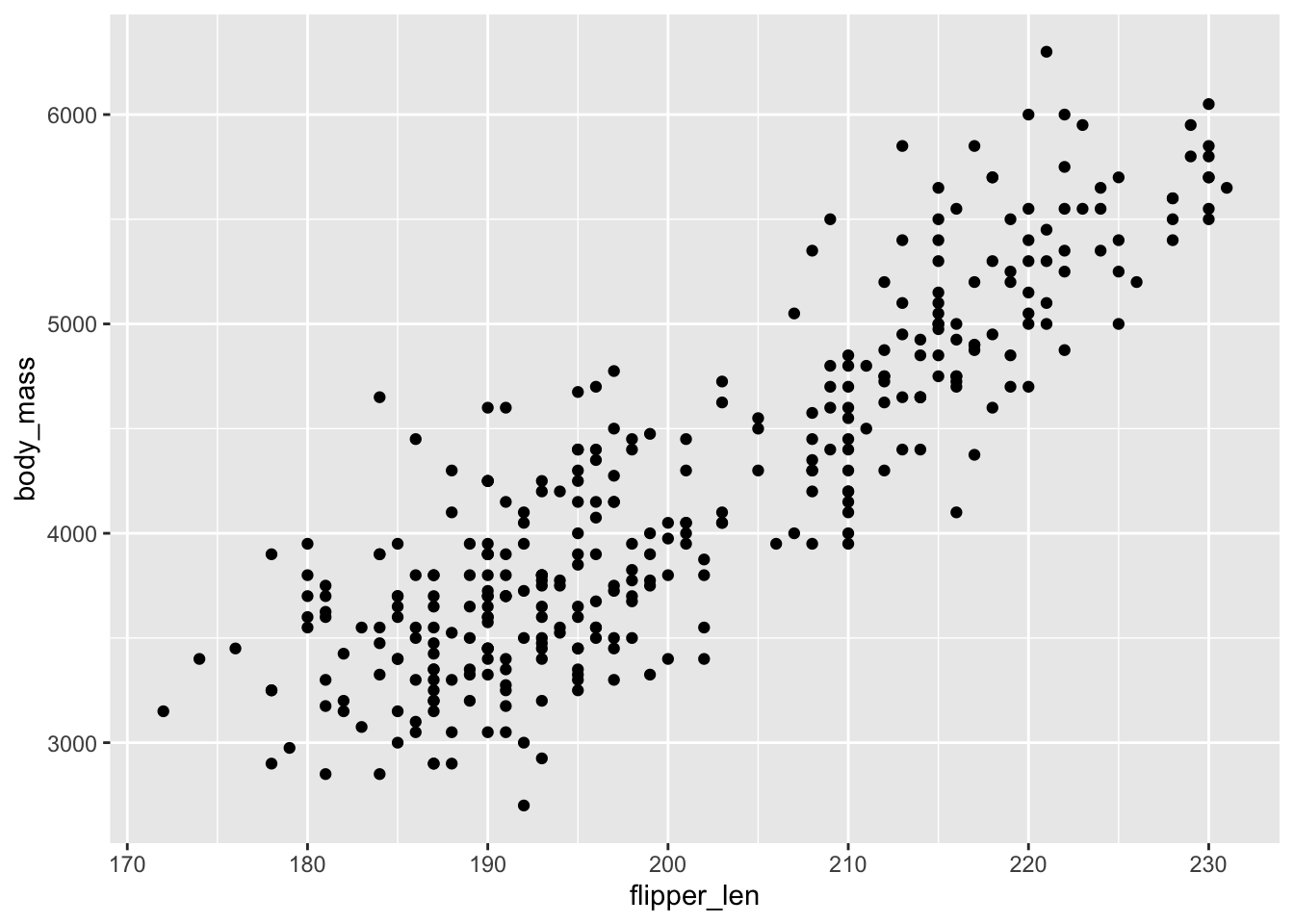 ggplot(penguins, aes(x = flipper_len, y = body_mass)) +