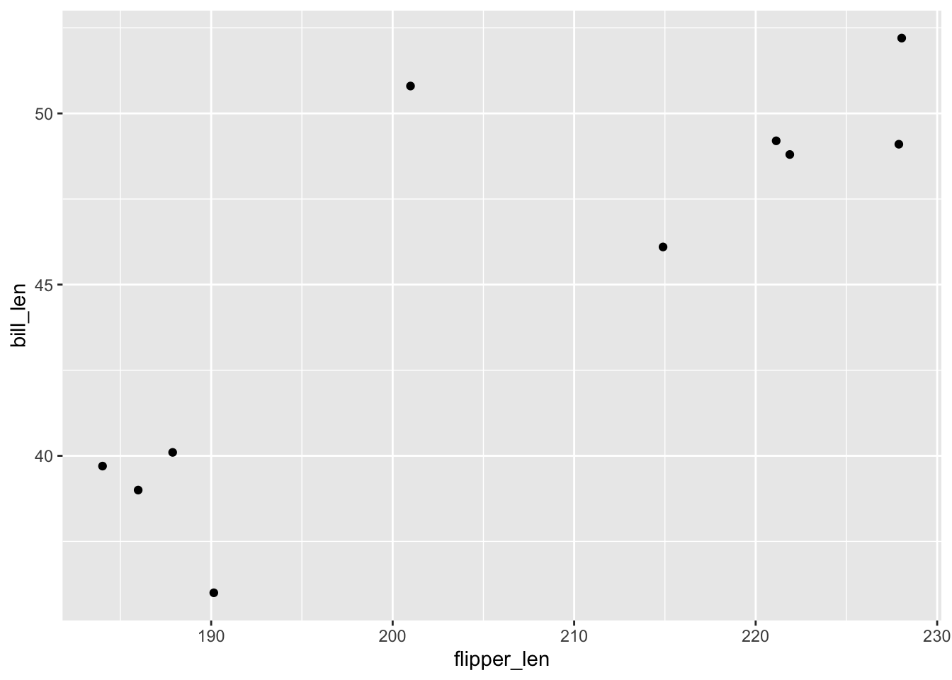 ggplot(penguins, aes(y = bill_len, x = flipper_len)) +