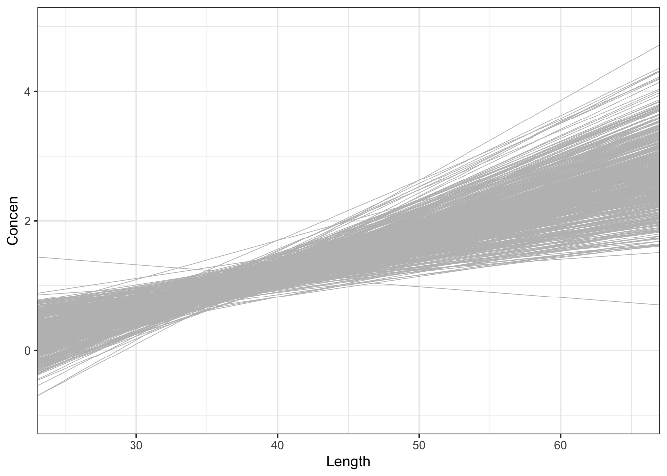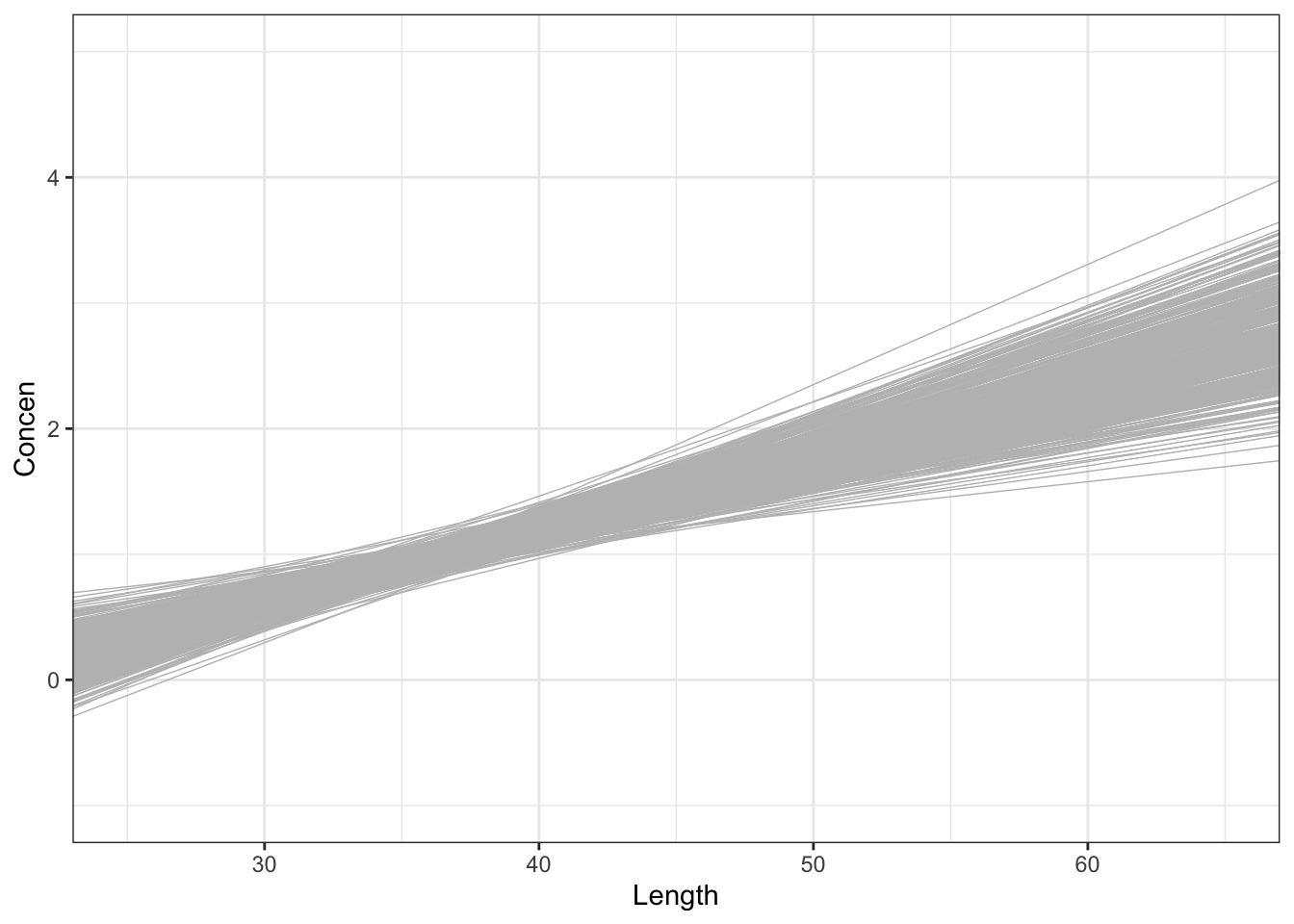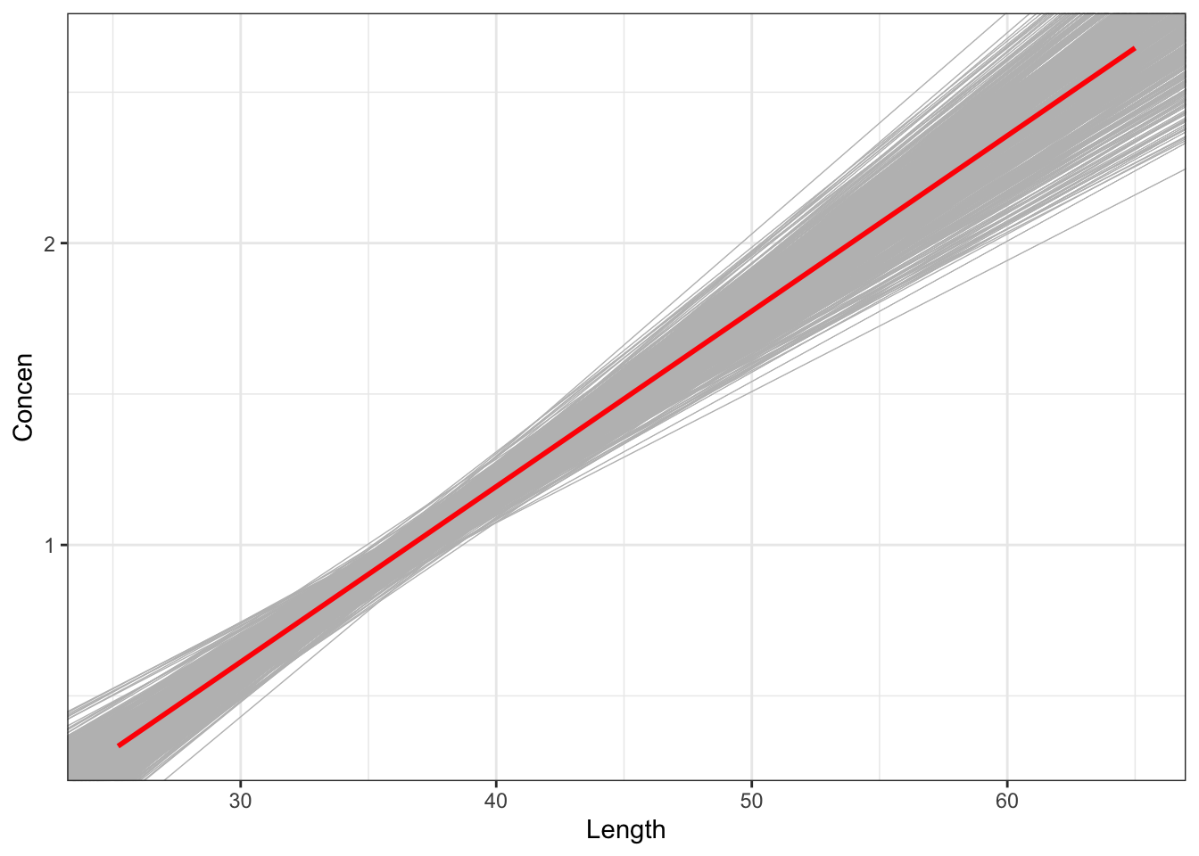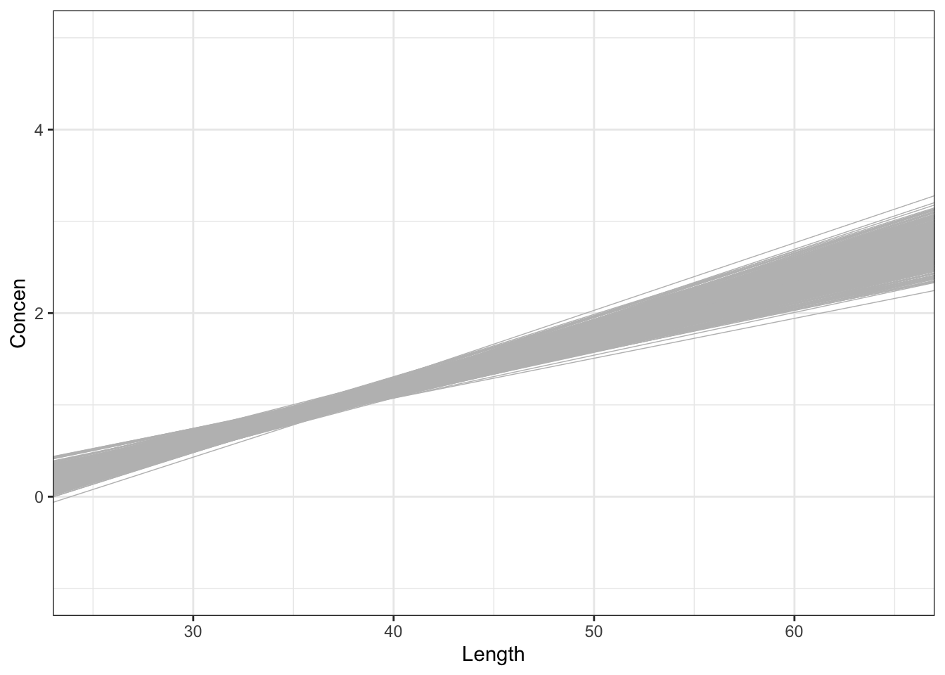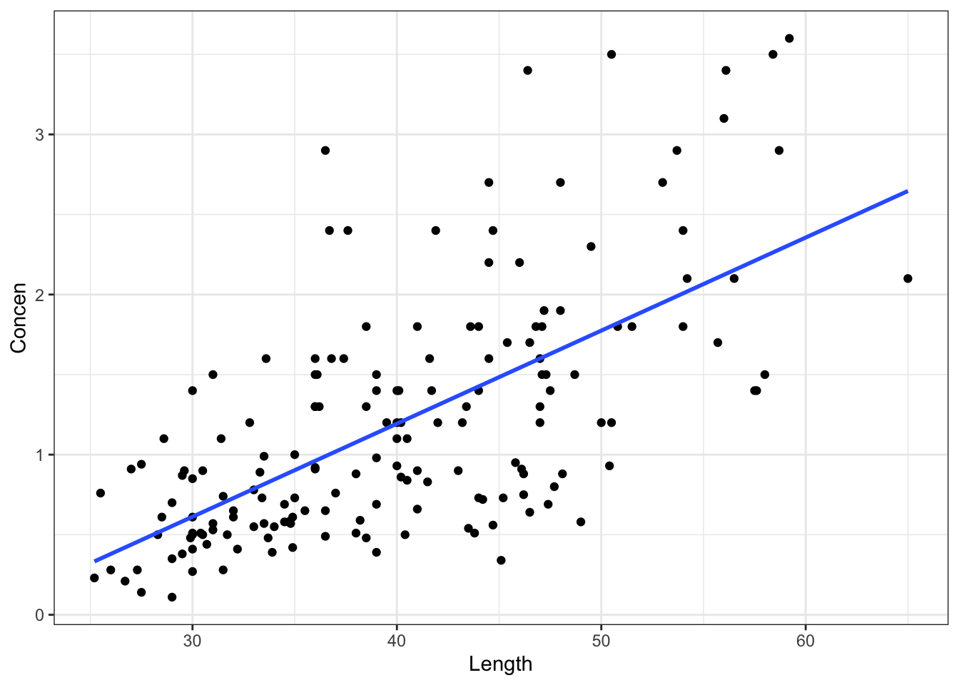 ## lm(formula = Concen ~ Length)