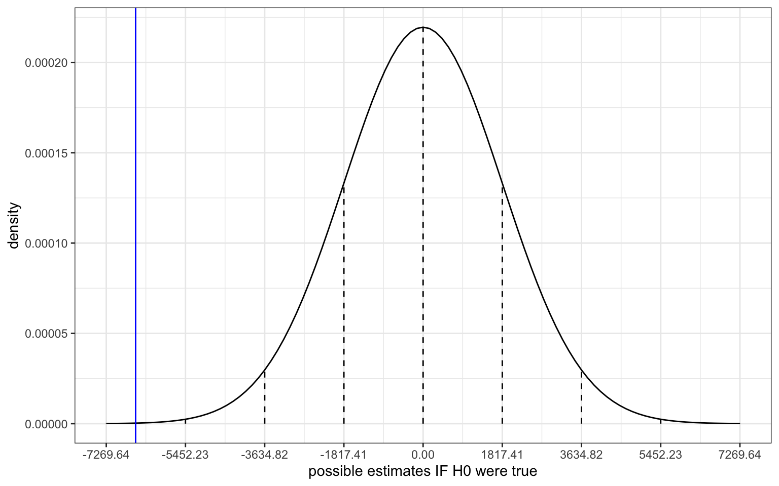 labs(y = "density", x = "possible estimates IF H0 were true")